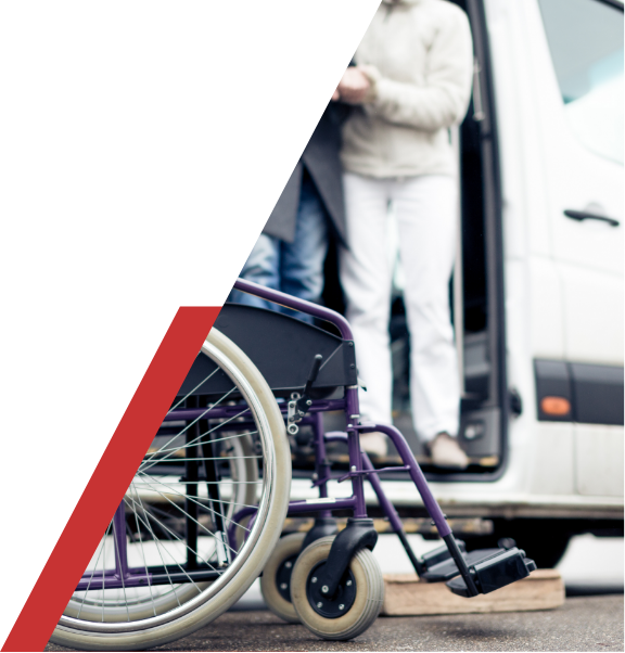 Sistemi di accesso, sollevamento e caricamento per il trasporto sicuro della carrozzina.