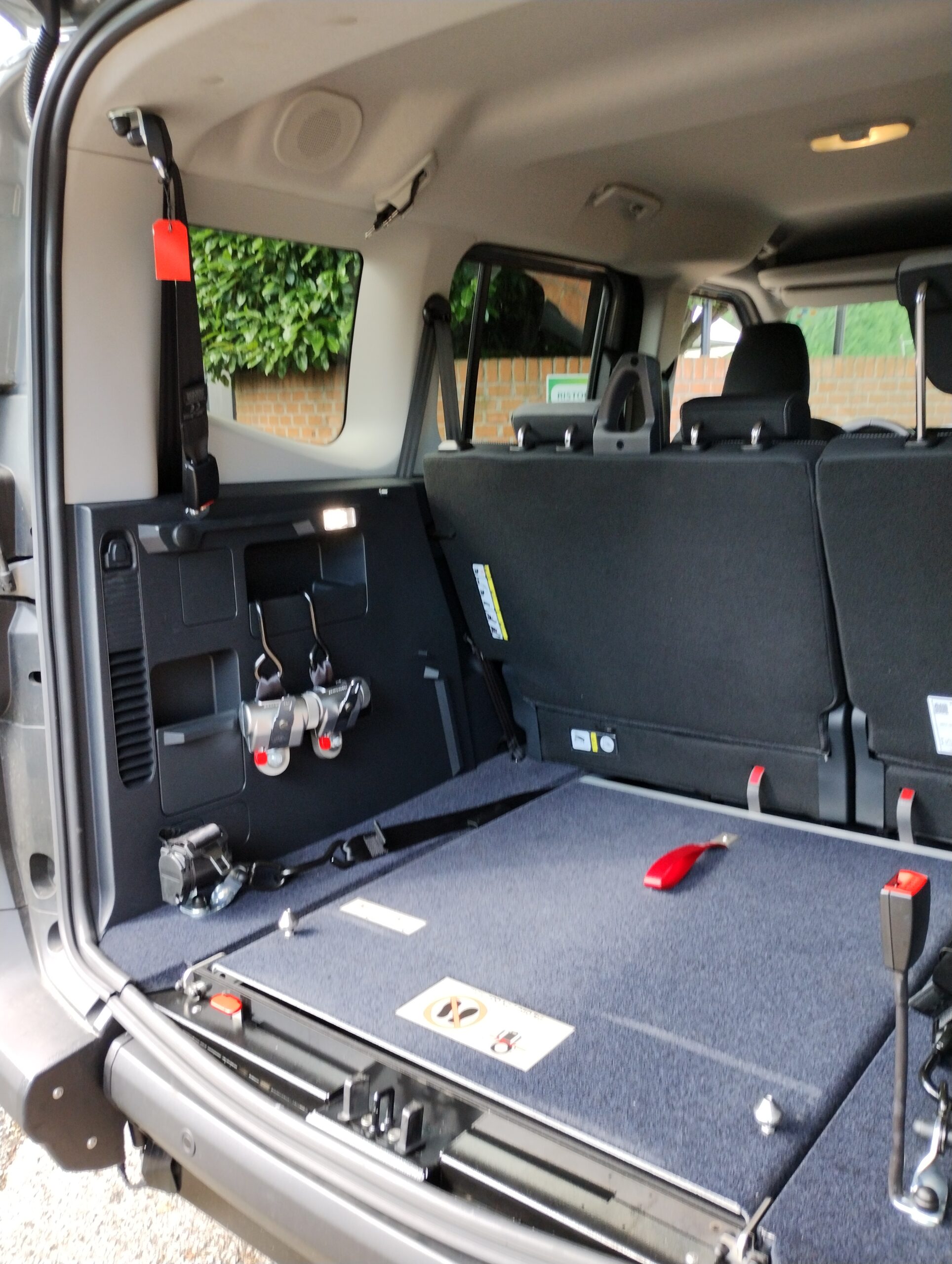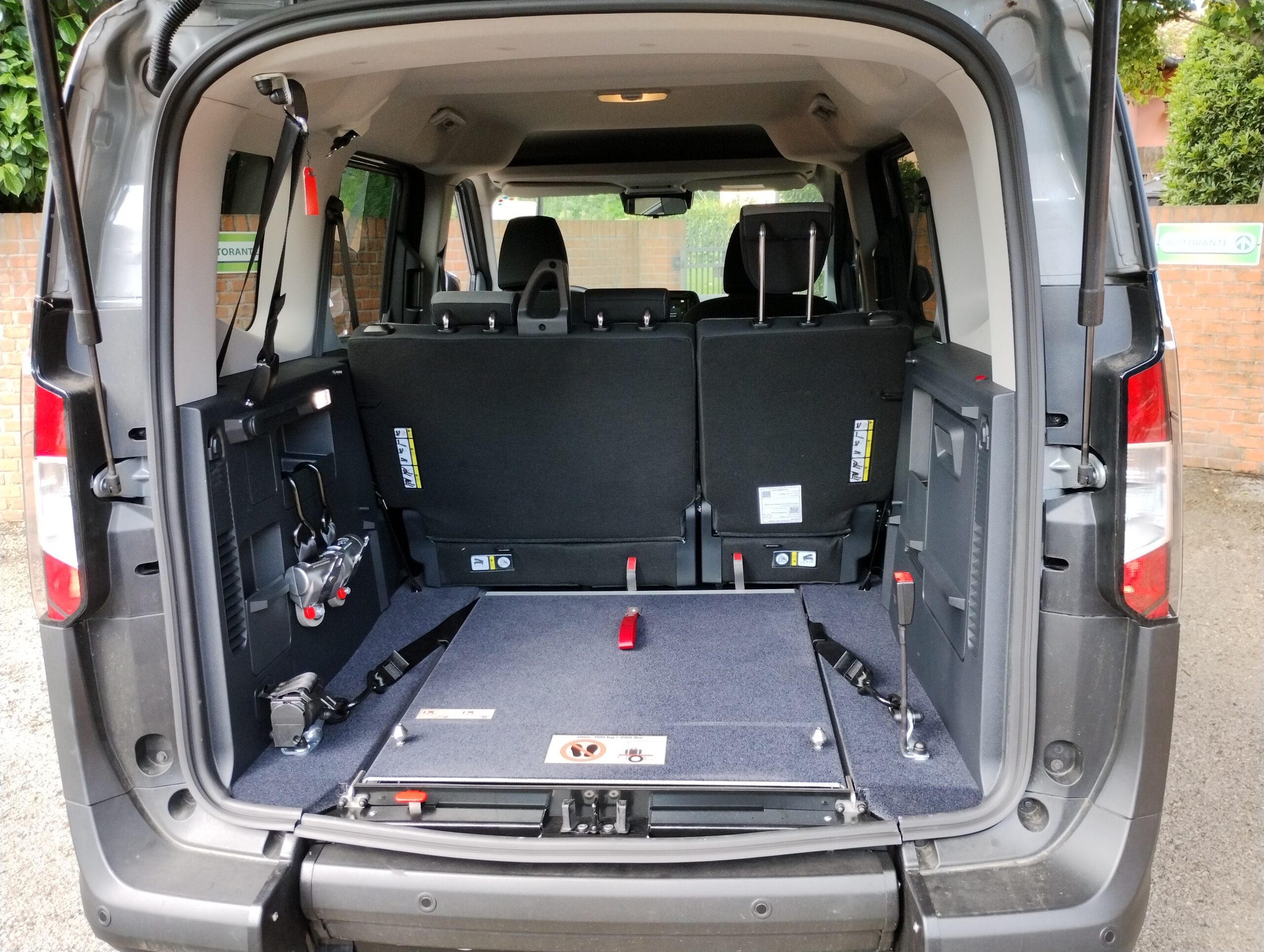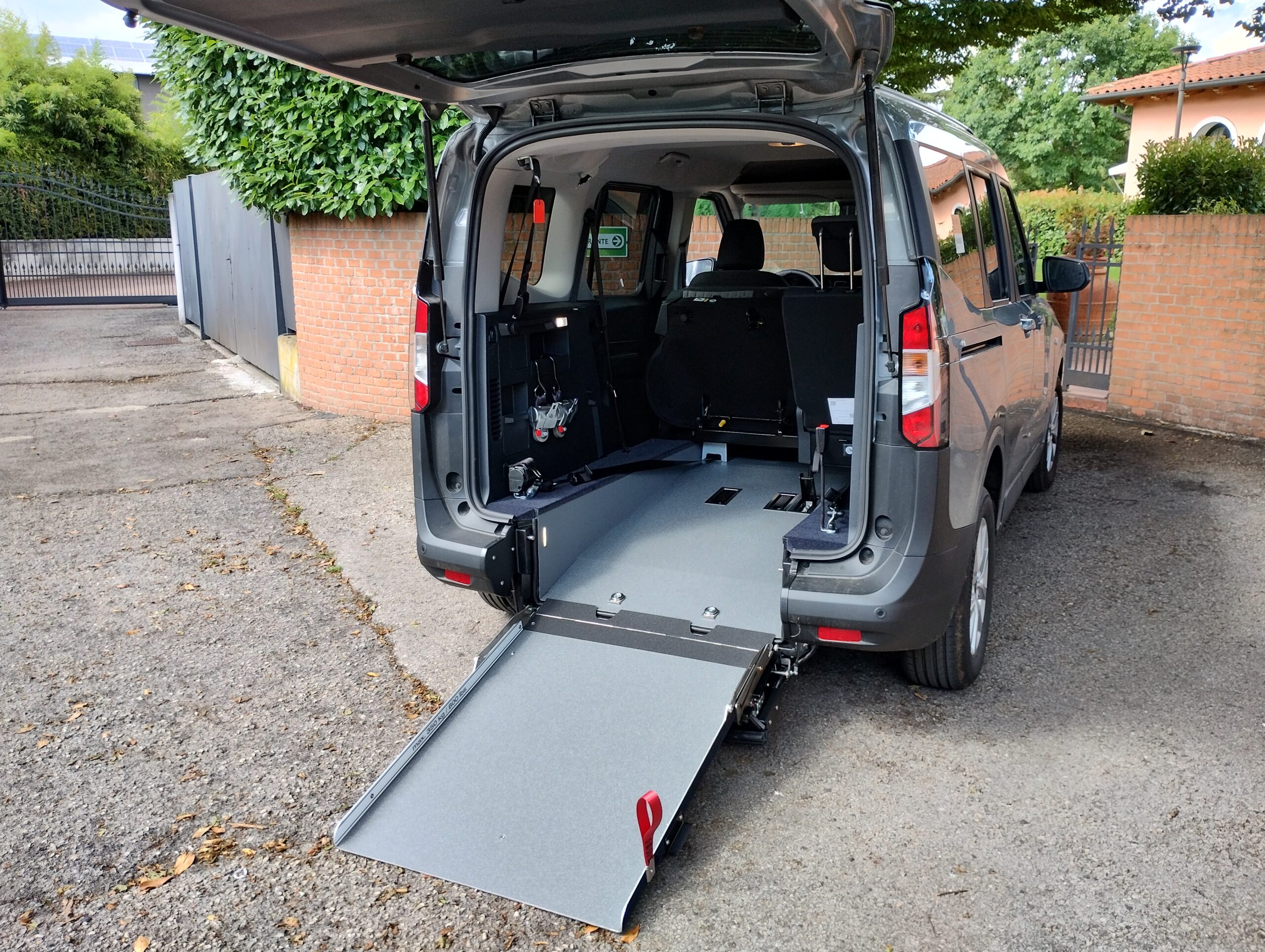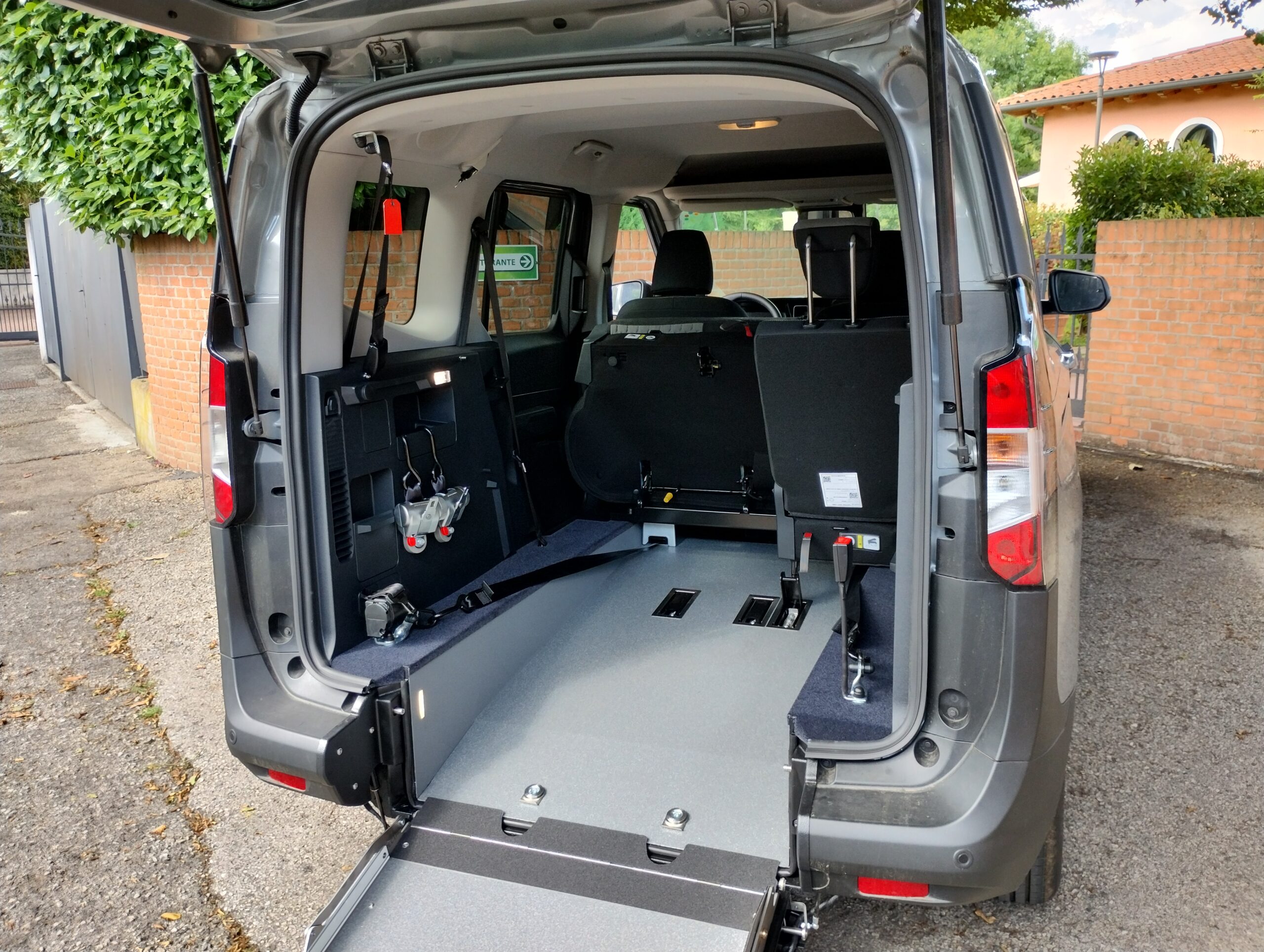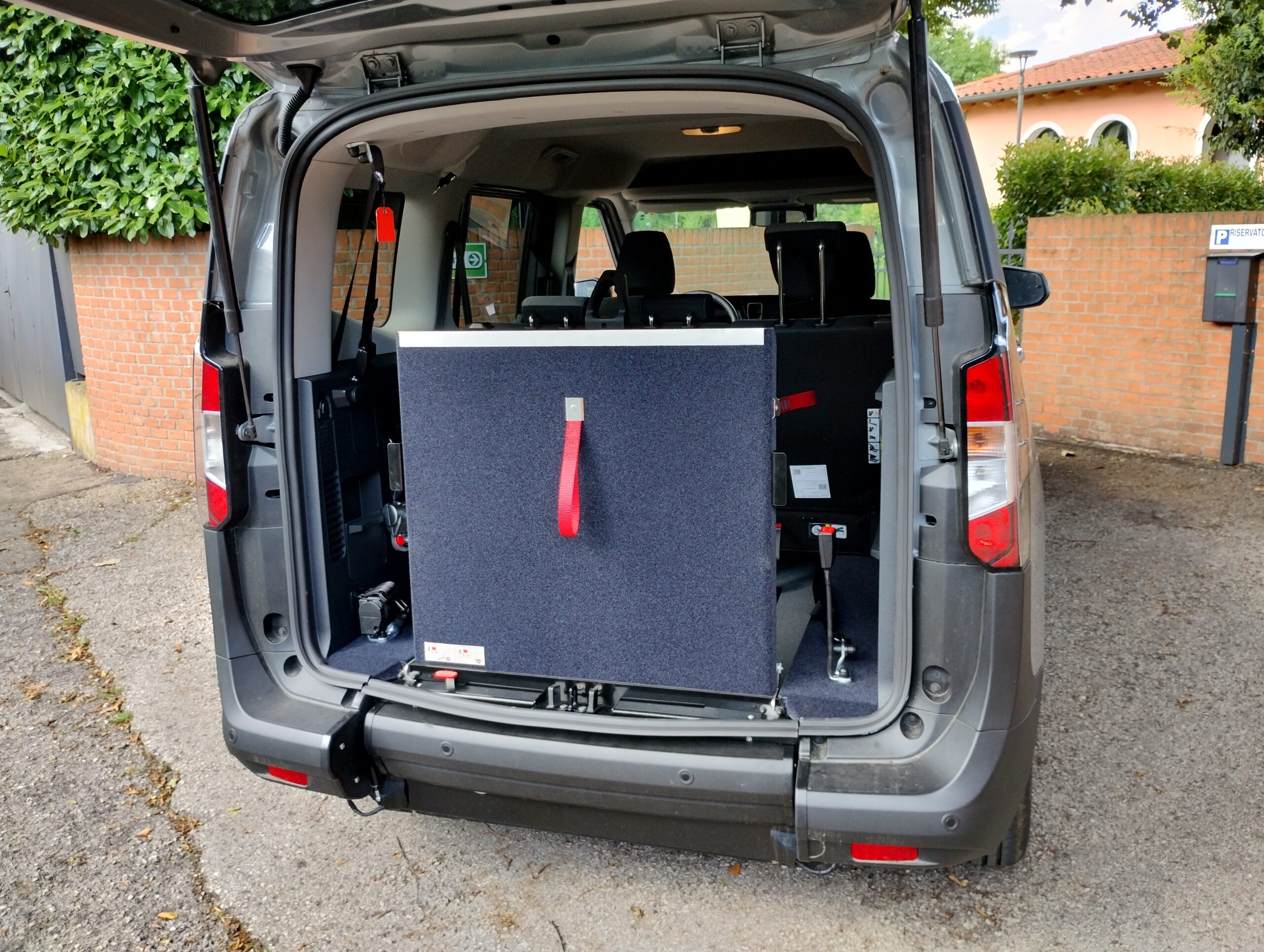 L’accesso all’interno del veicolo con abbassamento piano di carico avviene tramite una rampa manuale, che in presenza della persona seduta rimane in verticale durante la marcia, mentre in sua assenza può essere ripiegata verso l’interno usufruendo del bagagliaio in tutto il suo spazio.