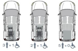 posti totali a sedere massimo sono 2 posti + 1 carrozzina, oppure 3 +1 carrozzina oppure 5 posti.