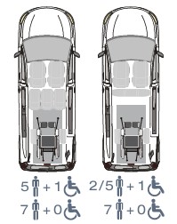 L’allestimento consente di avere un abitacolo spazioso ed è dotato di cinture elettriche anteriori extra lunghe per la sedia a rotelle.