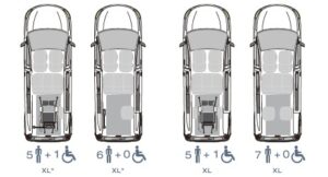L’allestimento consente di avere un abitacolo spazioso ed è dotato di cinture elettriche anteriori extra lunghe per la sedia a rotelle.